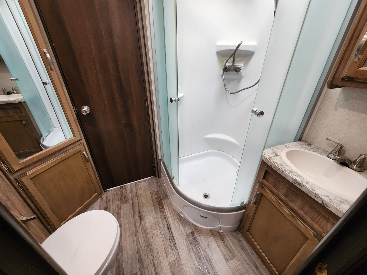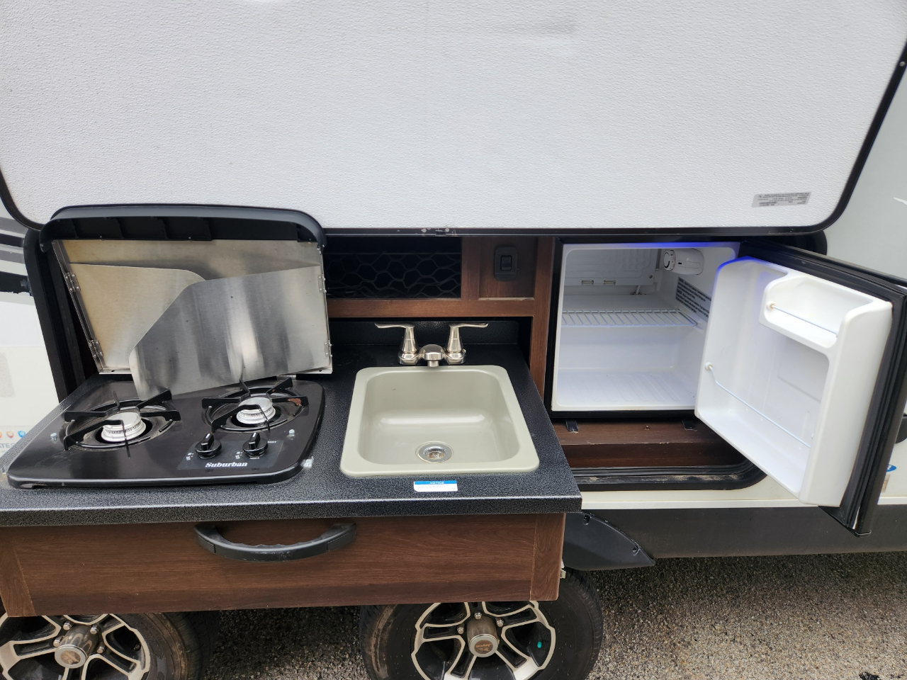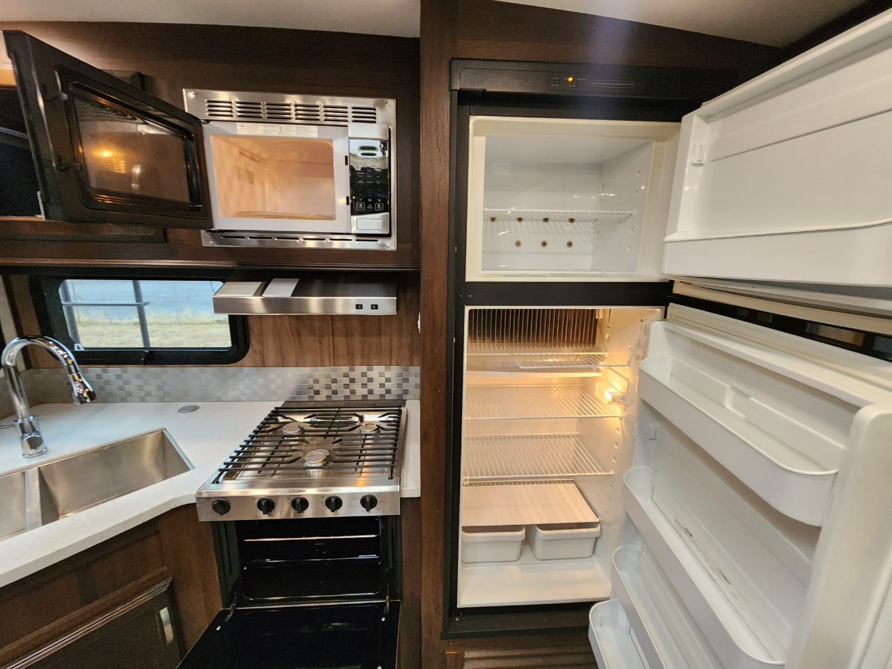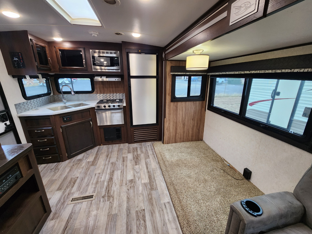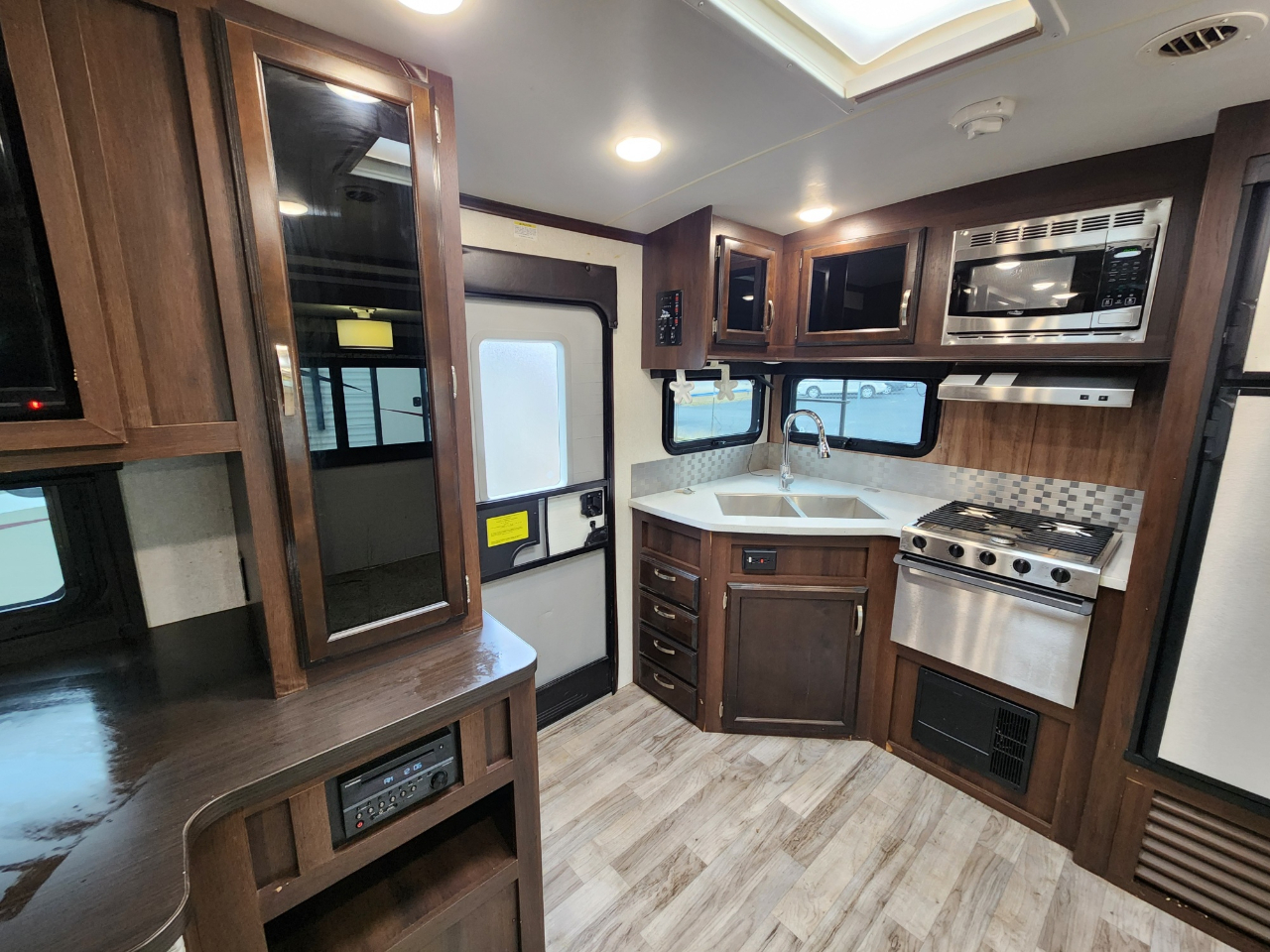 Convenience: Comes with a powered awning with LED lights and an exterior TV bracket.